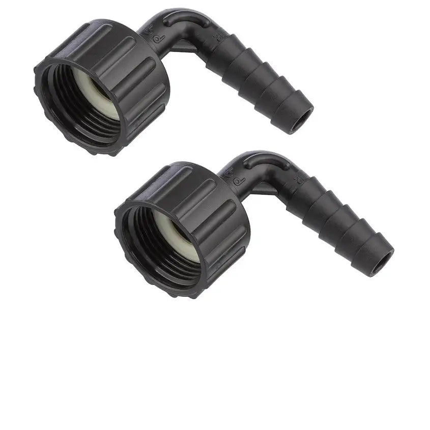 Kniekupplungen mit 3/4 Innengewinde auf Schlauchtülle 13 mm. Set bestehend aus 2 Stück, mit Dichtungsgummis, kein Teflonband erforderlich.