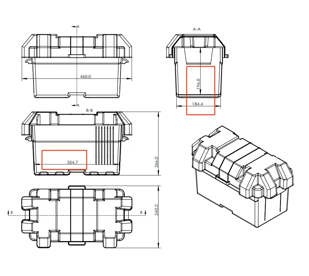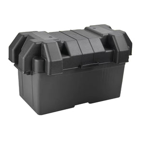 Die PRO Batteriebox schwarz ist eine robuste Batteriebox speziell für den intensiven professionellen Einsatz. Die Box hat eine stabile Kunststoffkonstruktion mit den Maßen 365 x 225 x 145 mm, ideal für schwere Batterien bis 130 Ah.
