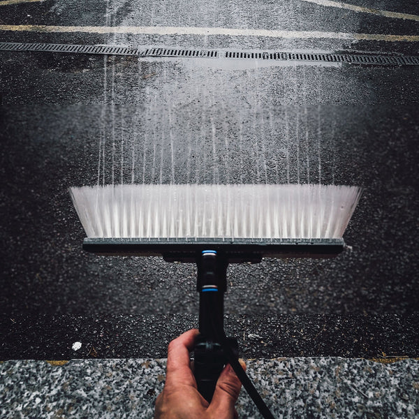 Dit borstelaccessoire zorgt voor een lineaire spoeling direct boven de bovenste borstelharen van uw borstel, waardoor u grote wateroppervlakken snel en moeiteloos kunt wegspoelen.
