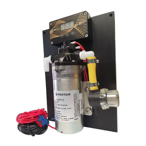 Panel with 12volt Shurflo pump 5.7, Shurflo filter couplings and Digital Varistreamer V16, incl. mounting material. Tested and ready to use.