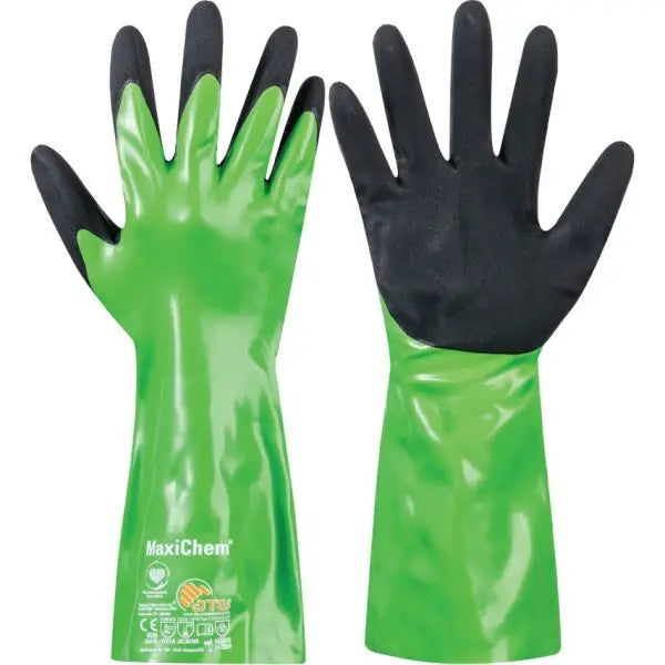 De ATG MaxiChem® is ontworpen en ontwikkeld voor mensen die werken met chemicaliën waarvoor een hoog niveau van bescherming nodig is. De handschoen is gecertificeerd als een product Type A volgens EN ISO 374:2016 + A1:2018.