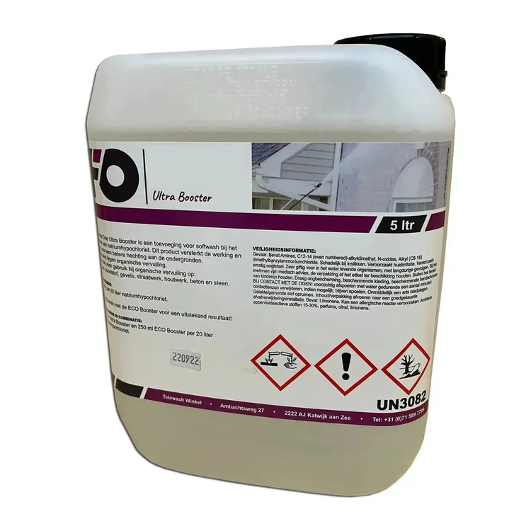 De Ultra Booster bevat een formule die organische vervuiling moeiteloos verwijdert.U kunt de Ultra Booster gebruiken op beton, steen, straatwerk, daken, gevels, en kunststof.